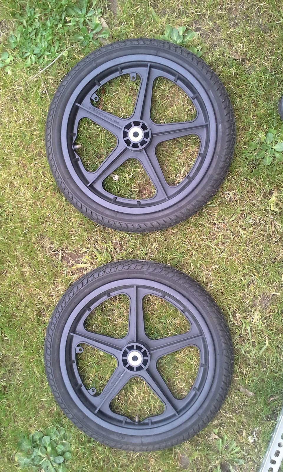 As rodas (16"), e o eixo (varão roscado M12)