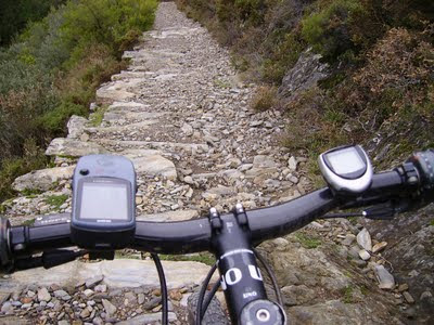 Após esta inesquecível incursão a solo irei, tal como na maternal instrução, escrever repetidas vezes a seguinte frase: “caminhos pedonais nem sempre são cicláveis!”. Convenhamos que uma coisa é percorrermos os ditos com umas botas de trekking, outra, diferente, é transportar 10 kgs. de alumínio colina acima.